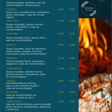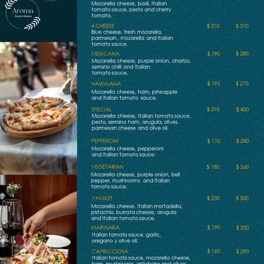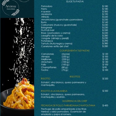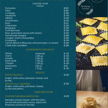 Explora lo mejor de un menú de platillos italianos especialmente seleccionados por nuestro chef.