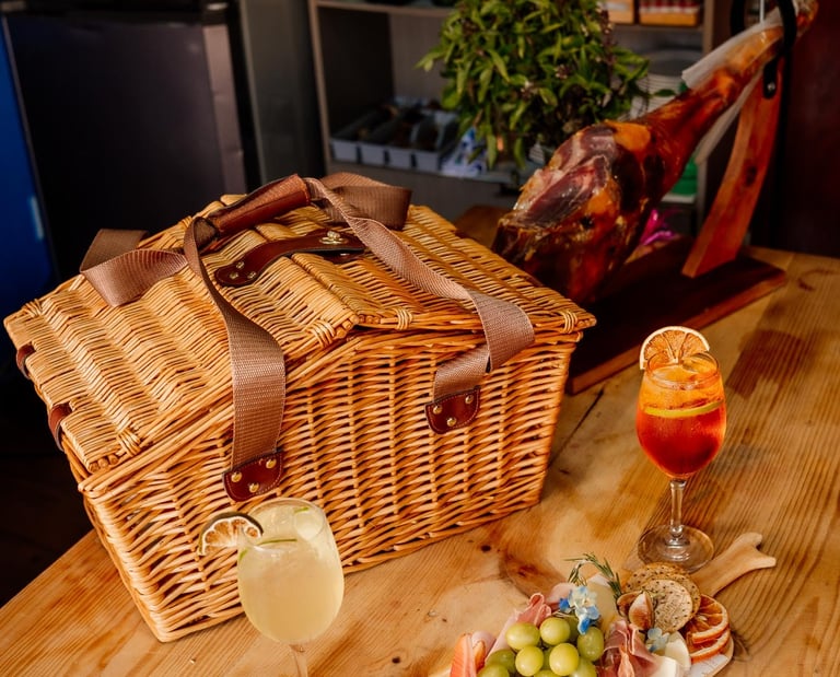 Para esas tardes en las que deseas disfrutar de un momento especial frente al mar, reserva nuestras canastas de picnic. Incluyen una cuidada selección de quesos, carnes frías y vino, pensadas para acompañar la experiencia de una puesta de sol inolvidable.